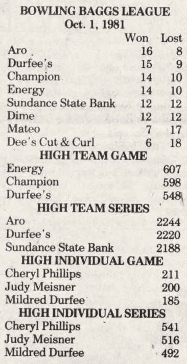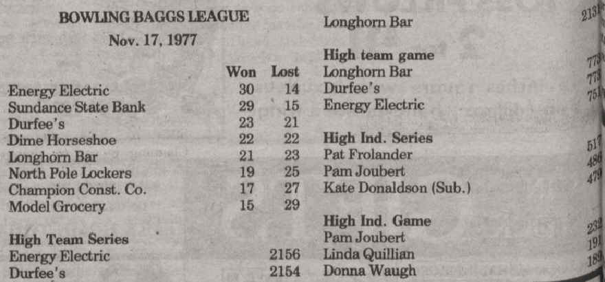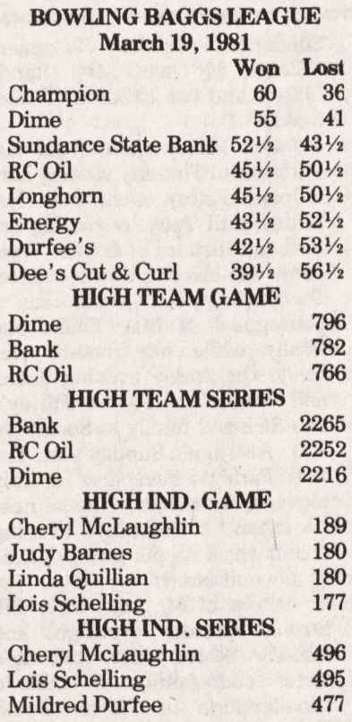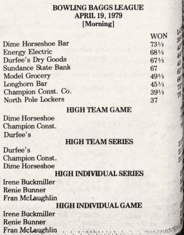 John H. Schlattman was manager of the lanes starting in 1965. In 1972, Jackie and Glenda Mobley purchased Krause Lanes Bowling Center and operated it until 1995. In 1987, the 42nd Annual Wyoming Women's State Bowling Tournament was held here in conjunction with Gillette WY. Rick Mills, and later with the help of his brother Gene, operated Tower Lanes for 18 years until it closed in 2013. In 1995, the 47th Annual Wyoming Men's State Bowling Tournament held the Team Event here in conjunction with the Doubles & Singles Event at Black Gold Fun Center in Newcastle, Wyoming. August 14-22nd 1996, new AMF AccuScore XL scoring units were installed which supported up to 8 bowlers per lane, Forty Frame Game and StrikeShot. |